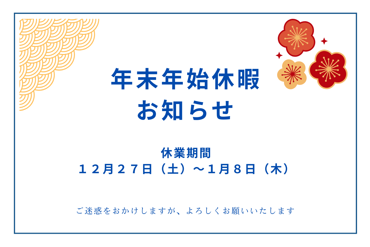 誠に勝手ながら、下記期間を年末年始休業とさせていただきます。